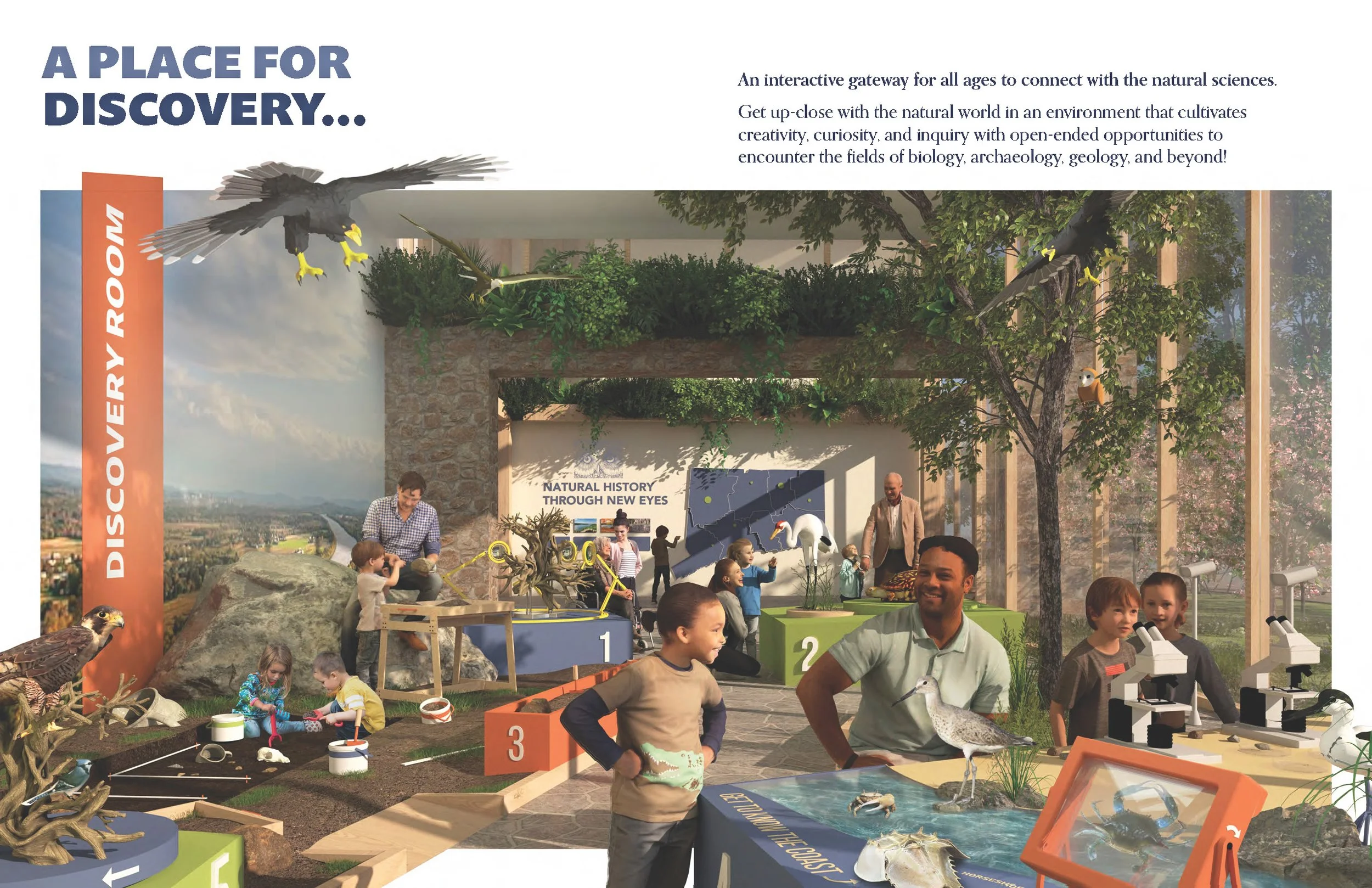 In 2023, the Connecticut State Museum of Natural History created a fundraising brochure to garner support for a new museum building that would be the first Living Building project in the state. These concept renderings, done in collaboration with Lord Cultural Resources, became key visualizations for their fundraising campaign. Our concept focused on showcasing their vast collection and representing moments of visitor engagement. WBA also supported the art direction of the brochure, specifically for the Rex Brasher Gallery spread.
