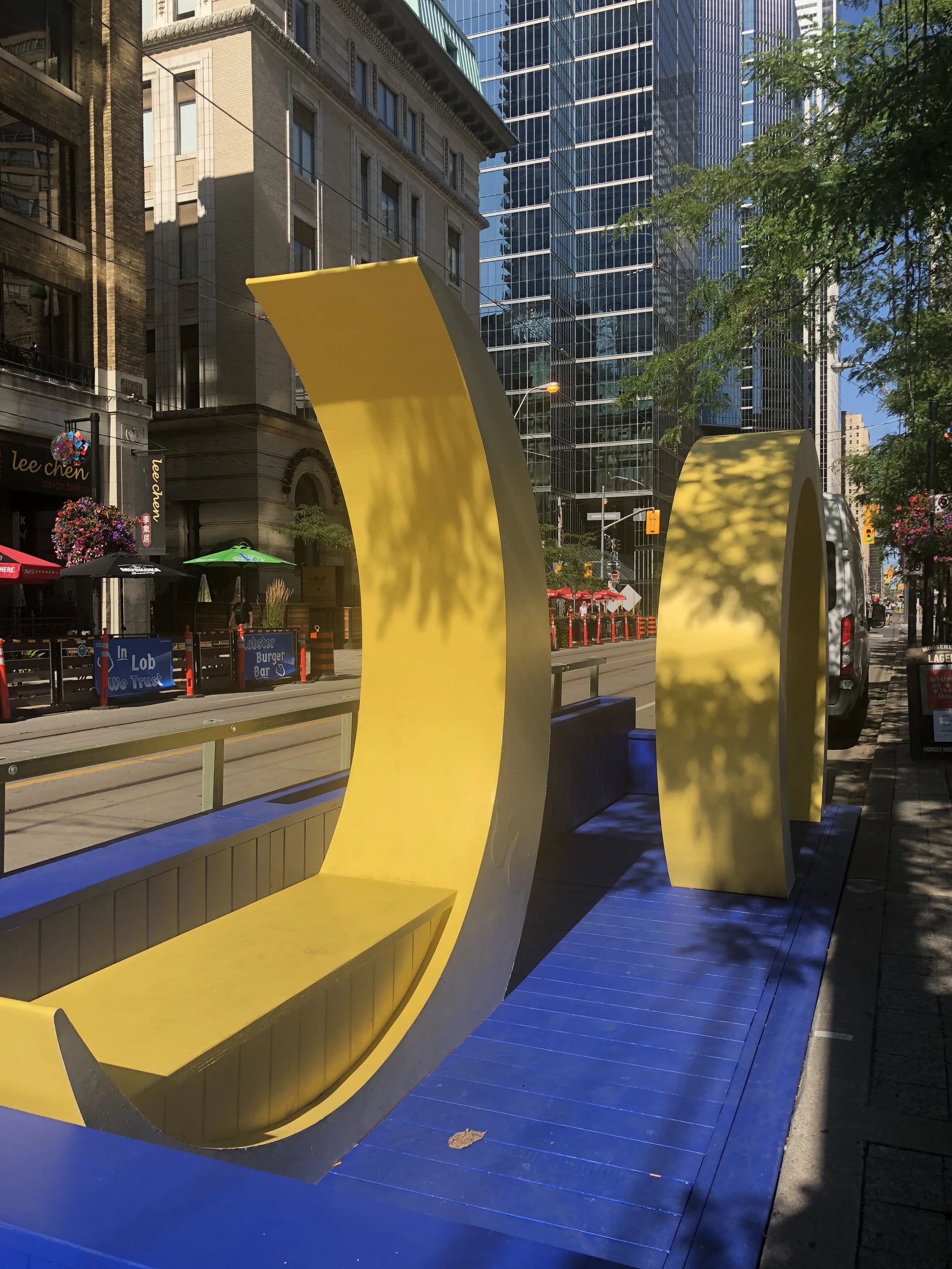 SUN + MOON is meant to evoke a sense of child-like wonder on King Street. The placement of these simple iconic forms in the midst of a dense urban context is meant to get people to stop, slow down, smile and play.